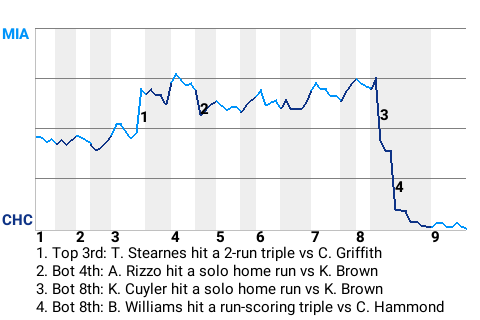 Chicago turned a good effort from starter Clark Griffith into a win over the Miami Marlins at Wrigley Field. The Cubs won the game, 6-2. The Cubs now have a record of 47-66.