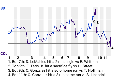 2 (19, 9th Inning off T. Hoffman, 0 on, 2 outs; 11th Inning off S. Linebrink, 2 on, 2 outs)