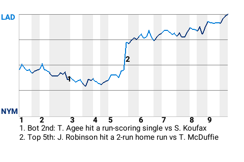 In a low-scoring contest between the Los Angeles Dodgers and the New York Mets, Sandy Koufax, who is tied for 4th in the NL in innings pitched with 188.0, proved to be the difference. The Los Angeles left-hander earned props for his performance in the 3-1 Dodgers win. Eric Gagne earned the save for Los Angeles. Los Angeles, now 68-50, holds down second place in the National League Western Division.