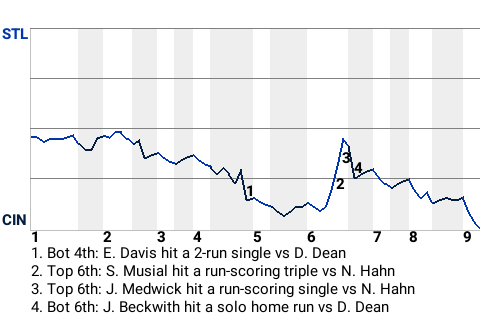 The Cincinnati Reds scooted past the St. Louis Cardinals, 4-3, at Great American Ball Park. Cincinnati pitcher Satchel Paige, in particular, performed like a star. Noodles Hahn came out of the bullpen to earn the win. The left-hander allowed 1 run on 2 hits in 2.1 innings. His record now stands at 5-2. With the win, the Reds sit at 66-60.