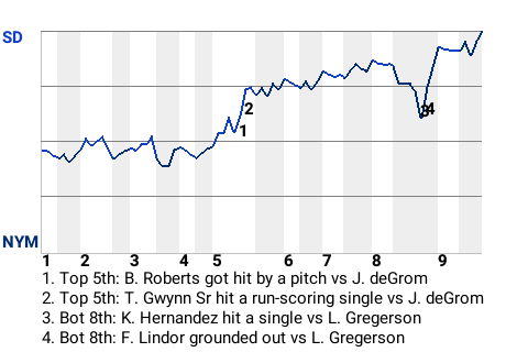 Fernando Tatis Jr., who is tied for 9th in the NL in RBI with 74, had a direct impact on the outcome. Tatis Jr. contributed a run-scoring sacrifice fly in the top of the fifth inning to put San Diego up, 2-0.