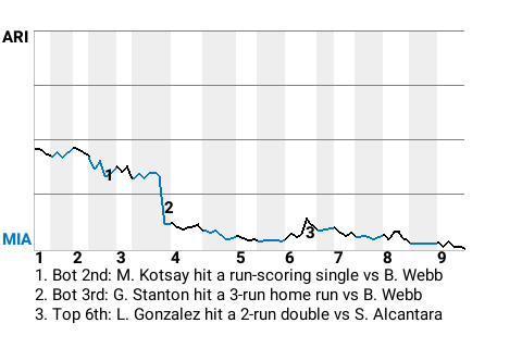 Stanton made an early impact for Miami when he stroked his 17th home run of the season. The 3-run home run, which came in the bottom of the third, put the Marlins on top, 4-0.