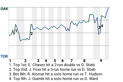 a - J. Giambi pinch hit for T. Steinbach in the 9th
