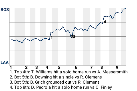 The Boston Red Sox picked up a win at Angel Stadium of Anaheim, taking down the Los Angeles Angels, 2-0. Starting pitcher Roger Clemens was a big reason why. Los Angeles is 13-16 after the defeat.