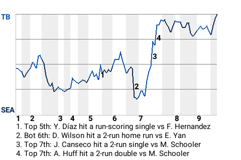 2 (9, 1st Inning off W. Bell, 0 on, 0 outs; 6th Inning off E. Yan, 0 on, 2 outs)