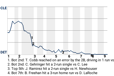 3 (7, 2nd Inning off C. Lee, 1 on, 0 outs; 7th Inning off S. Siebert, 0 on, 0 outs; 8th Inning off D. LaRoche, 1 on, 2 outs)