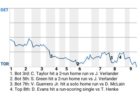 b - J. Olerud substituted for V. Guerrero Jr. in the 9th