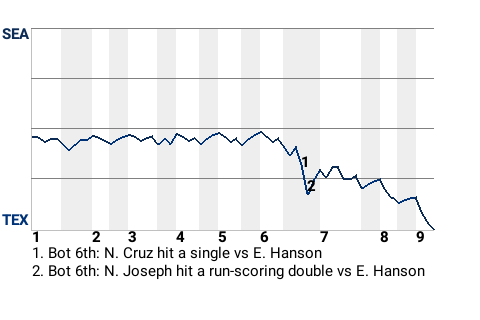 The Mariners had been locked in a 0-0 tie with the Rangers going into the bottom of the sixth inning. That changed quickly when the 27-year old third baseman Newt Joseph came to the plate. Joseph hit a run-scoring double on a 1-1 changeup from Seattle hurler Erik Hanson. It was Joseph's 15th double of the year.