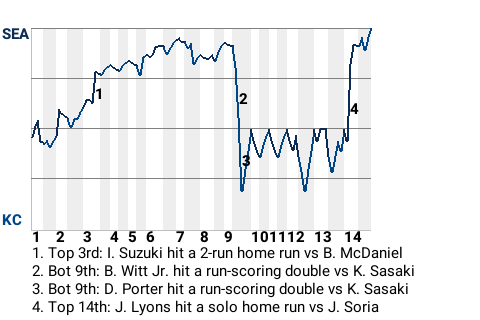 (15, 9th Inning off K. Sasaki, 0 on, 0 outs)