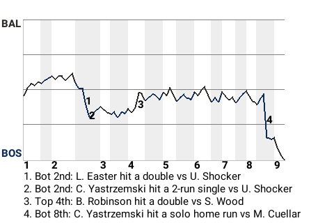 Yastrzemski had a game-changing home run in the bottom of the eighth. On a 1-0 screwball from Mike Cuellar, he banged a solo home run to center, giving the Red Sox a 3-2 lead. It was the 5th home run of the year for Yastrzemski.