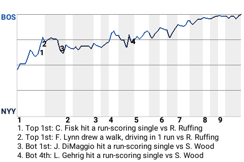 It could have been a different outcome for Boston, had it not been for Fred Lynn, the 27-year old right fielder . Lynn contributed a run-scoring walk in the top of the first inning to put Boston up, 3-0.