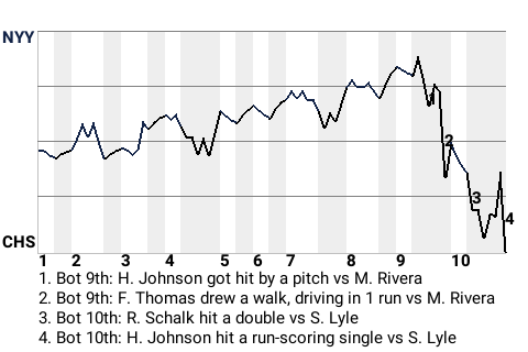 The White Sox got a clutch hit from right fielder Heavy Johnson. In the bottom of the tenth, he delivered a run-scoring single to win the game for the White Sox.