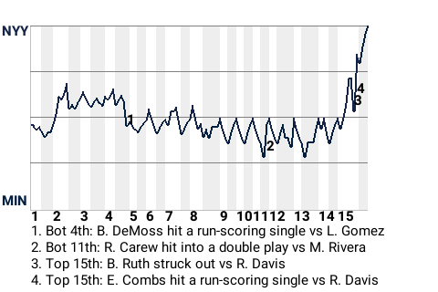 New York used the timely hitting of Earle Combs to seize the win. The left fielder stroked a run-scoring single in the top of the 15th inning to put the Yankees on top, 2-1. It was his only hit in 2 at-bats, but it was a game-changer.