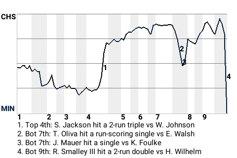 2 (8, 3rd Inning off E. Walsh, 0 on, 0 outs; 9th Inning off H. Wilhelm, 2 on, 2 outs)
