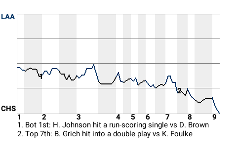 Ballpark: U.S. Cellular Field Weather: Clear skies (37 degrees), wind blowing in from left at 10 mph Start Time: 7:35 PM CT Time: 2:53 Attendance: 18647 |