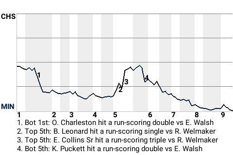 3 (20, 1st Inning off E. Walsh, 1 on, 2 outs; 5th Inning off E. Walsh, 1 on, 2 outs; 7th Inning off W. Wood, 1 on, 2 outs)