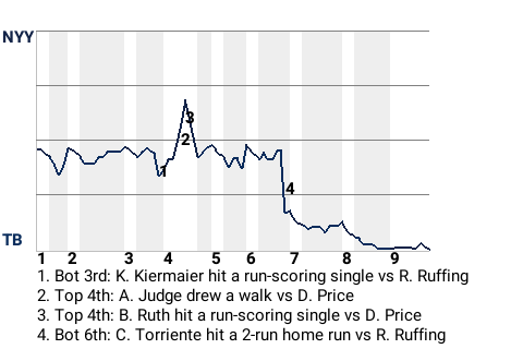 The Yankees had been locked in a 1-1 tie with the Rays going into the bottom of the sixth inning. That changed quickly when the 26-year old center fielder Cristobal Torriente came to the plate. Torriente hit a 2-run home run on a 1-2 curveball from New York hurler Red Ruffing. It was Torriente's 11th home run of the year.