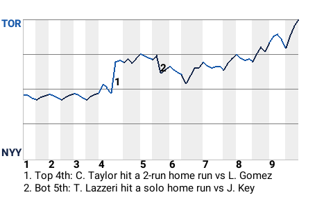 Toronto used a clutch at-bat from Candy Jim Taylor to capture the win. The designated hitter hammered a 2-run home run in the top of the fourth inning to put the Blue Jays ahead, 2-0. It was his lone hit in 3 at-bats, but it was a humdinger.