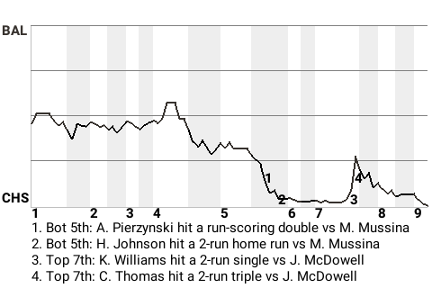 2 (13, 5th Inning off M. Mussina, 1 on, 0 outs; 7th Inning off M. Pappas, 0 on, 0 outs)