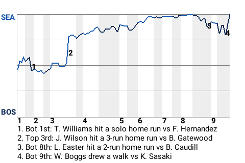 In the top of the third, Wilson had a 3-run home run for Seattle. It was his 14th home run of the season and put the Mariners on top, 4-1.