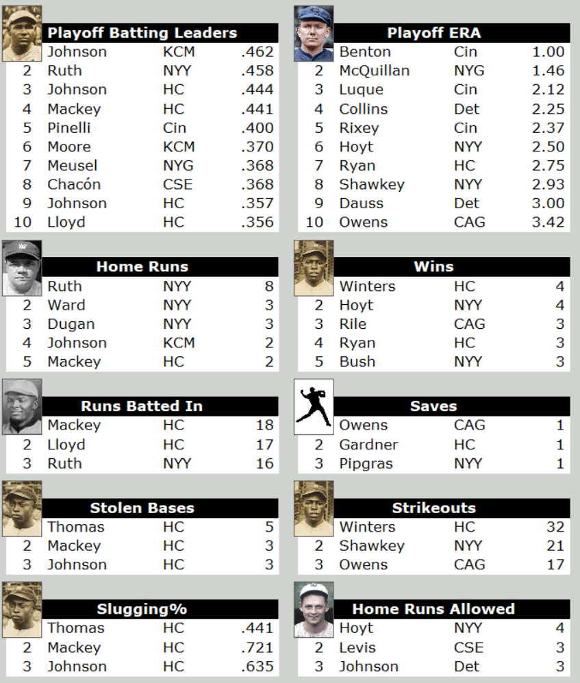 In 1923 we have now played 8 Integreated World Series. Yes the MLB have dominated winning 6 of those 8, but there have been some close series. This year’s MLB clubs are the two New York clubs the Yankees and the Giants along with the Reds and the Tigers for their first time. In the NNL we have two new comers the Hilldale club and the Cuban Stars East. The Monarchs and the American Giants return to battle the MLB clubs. The Yankees won the MLB world series over the Giants.