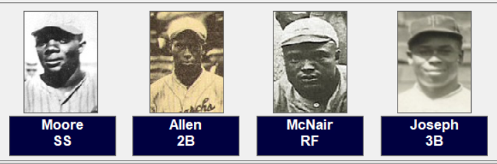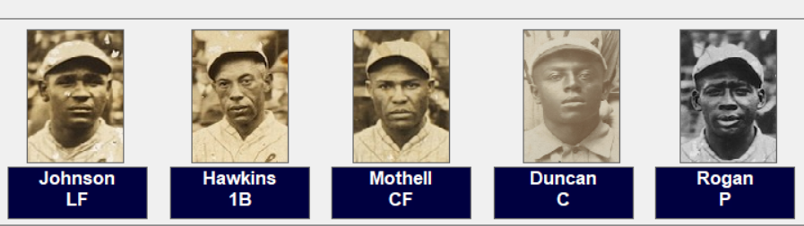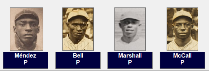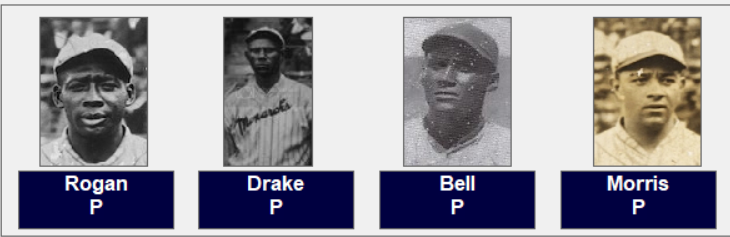 The Monarchs are only the third NNL club in the ten series’ to win the title. It is thought that this club may have been the best team in the entire history of the Negro Leagues. It has been proven in some of my replays they could compete with any club, MLB or NNL. Here is the club starting with the pitchers; “Bulllet” Joe Rogan, Bill Drake, William Bell, Yellow Horse Morris, Jose Mendez, Cliff Bell, Jack Marshall and Bill McCall.