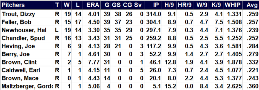 Here is a breakdown of the final four clubs, starting with the 1940 team, the Chicago White Sox who finished in second place. Notice the pitchers, and batters are like a best of players from the early 1940’s.