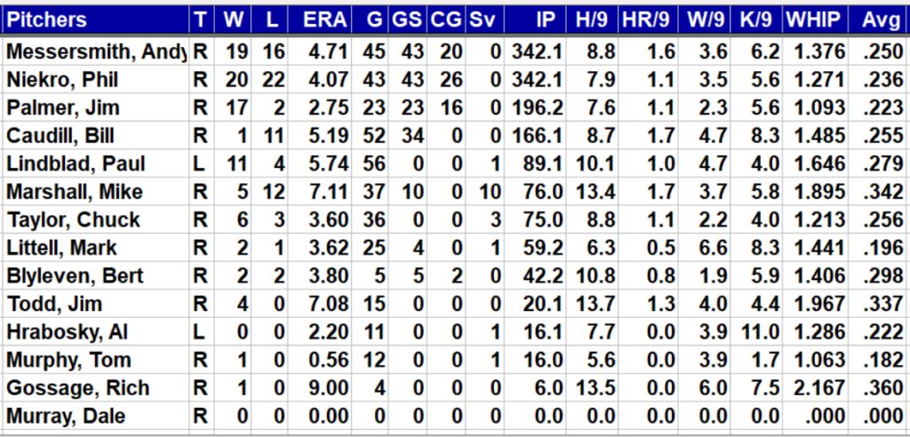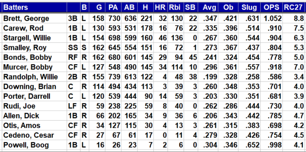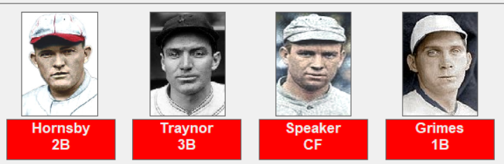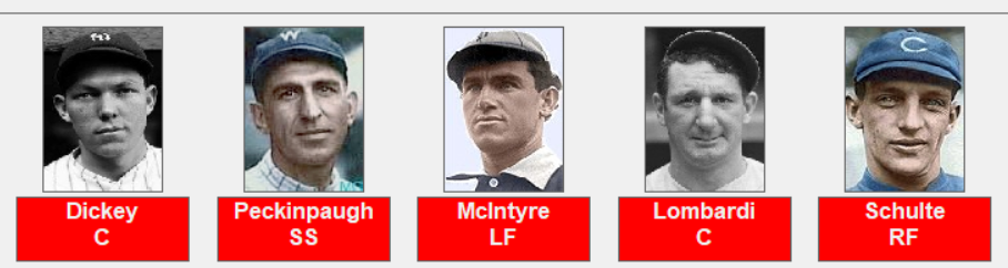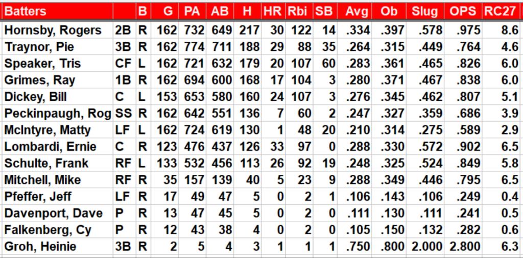 The next club the 1920 New York Giants finished in first place. Here are their pitchers and batters, once again the club is a collection of the best players from thr early 1920s.