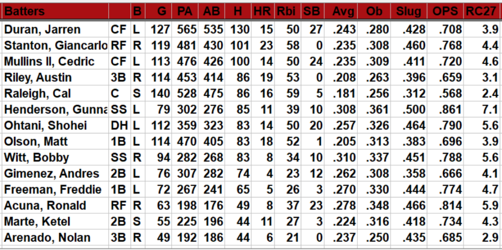The third club is from the modern era the 2020 Arizona Diamonbacks, like the other two the list is a who’s who of current stars. This club finished in third place.